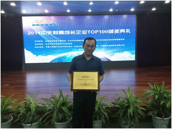 2014年8月8日,在北京市科委、中關村管委會、海淀園管委會及政府主管部門的指導與支持下,由北京中關村高新技術企業協會主辦的“2014中關村高成長企業TOP100”評選結果發布會暨頒獎典禮在京隆重舉行。北京熱景生物技術有限公司憑借較快的增長速度、,以及高素質的優秀管理團隊,在眾多企業中脫穎而出,榮膺上榜。熱景生物的副總經理管寶全同志代表公司出席了頒獎典禮。