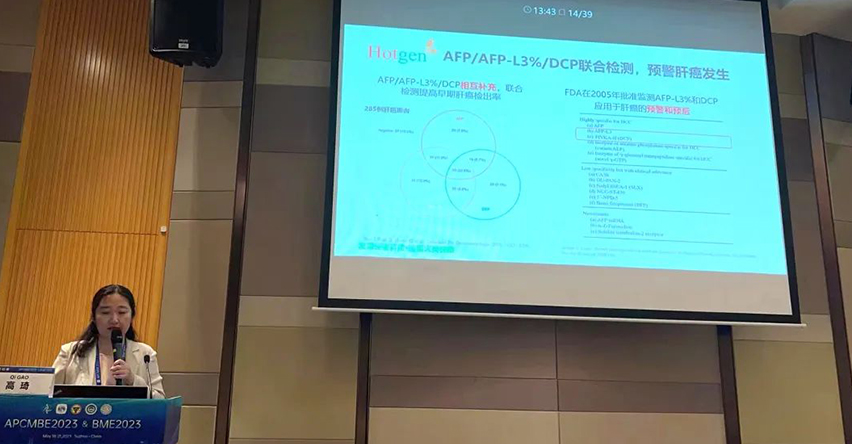 5月21日,熱景生物副總經(jīng)理高琦博士受邀在“醫(yī)學(xué)檢驗工程:醫(yī)工協(xié)同 融合創(chuàng)新”分會場作主題為《多組學(xué)技術(shù)在腫瘤早期診斷中的應(yīng)用》的精彩報告。在這次精彩的報告中,高琦博士向我們展示了熱景生物應(yīng)用獨創(chuàng)的糖捕獲技術(shù),在腫瘤早篩早診研究領(lǐng)域的領(lǐng)先進展,特別在肝癌領(lǐng)域,基于大數(shù)據(jù)和人工智能技術(shù),實現(xiàn)惡性肝病的預(yù)防、早期發(fā)現(xiàn)、動態(tài)監(jiān)測,為患者提供全方位的肝臟健康管理解決方案。