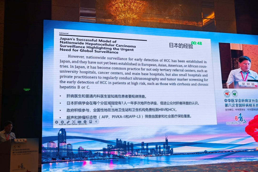 西安交通大學第二附屬醫院黨雙鎖教授作“從臨床實踐談肝癌早期診斷”專題報告,在分享肝癌診斷日本經驗中提到的:1.肝病醫生和普通內科醫生皆知高危患者要規律篩查;2.日本肝病學會在每個分區域指定1人一年多次地開辦講座,促進公眾對肝癌篩查的認識;3.政府積極參與,全國性地在當地衛生站和衛生機構免費檢測HBV和HCV;4.超聲和腫瘤標志物(AFP、DCP和AFP-L3)篩查由國家和社會醫療保險覆蓋。