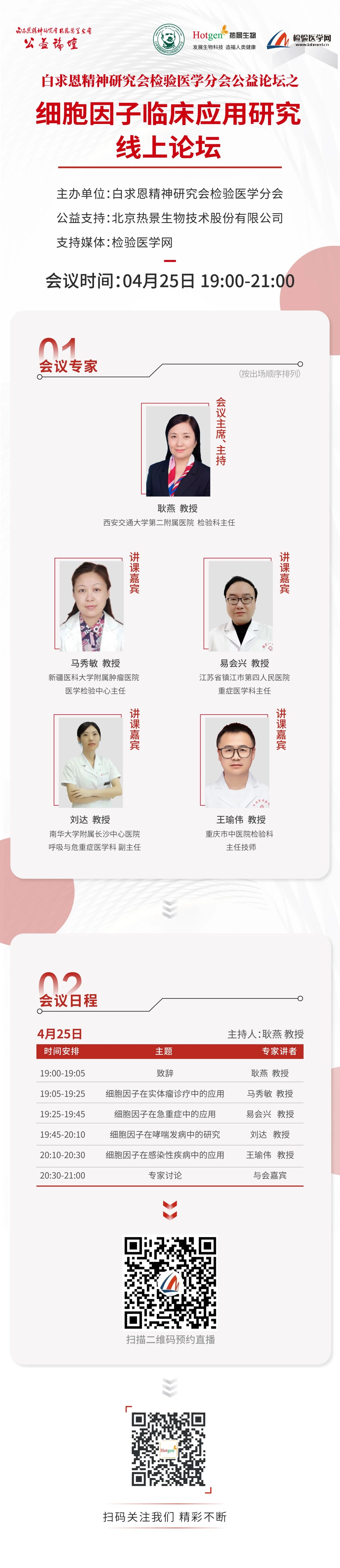 直播預告 | 白求恩精神研究會檢驗醫學分會公益論壇之“細胞因子臨床應用研究線上論壇”