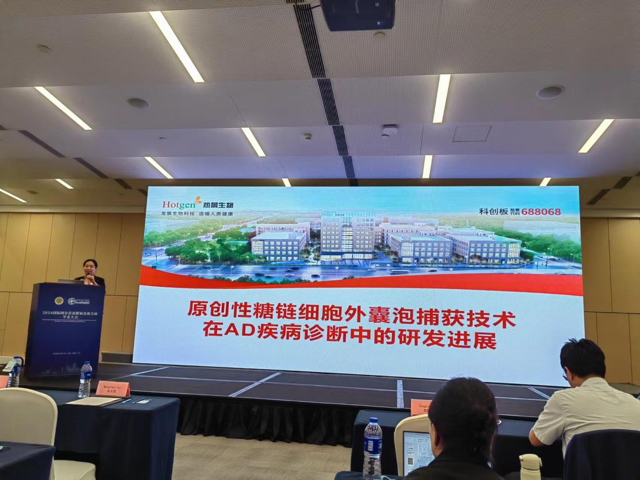 在分論壇,許立達研究員作了“原創性糖鏈細胞外囊泡捕獲技術在AD疾病診斷中的研發進展”主題報告,詳細介紹了熱景生物原創的糖鏈外泌體捕獲技術,以及在AD、肝癌、胃癌等眾多領域的研究進展,獲得在場人員的高度認可。
