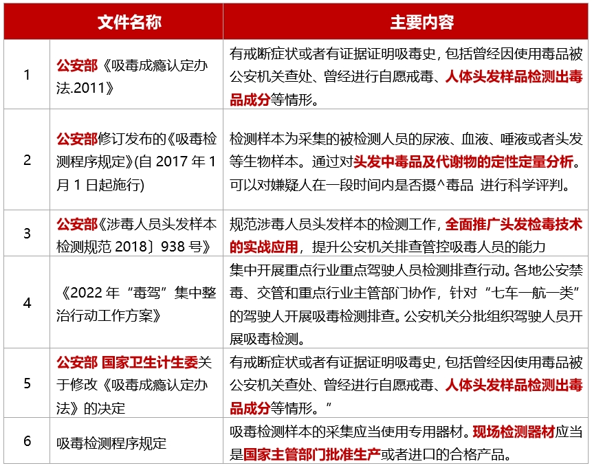 與傳統的血液、體液檢測相比,藥物濫用頭發檢測具有無法比擬的獨特優勢,諸如檢測時效長、無創采集、樣本易于采取和保存、不怕污染,可以重復取樣等。最主要的是,頭發檢測有更長的追溯期,可通過頭發檢測推測過去3天至6個月吸毒情況。毒品頭發檢測技術已成為《吸毒成癮認定辦法》認定吸毒成癮的標準。
