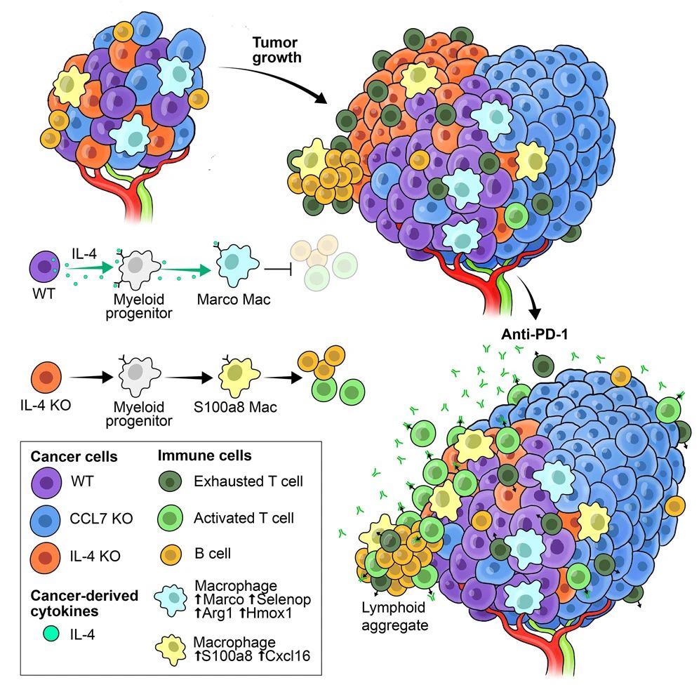 “令人驚訝的是,即使在含有產生il -4的癌細胞的腫瘤中混合,缺乏il -4的癌細胞也被免疫系統消除,這種現象稱為腫瘤內異質性,這也有助于癌癥的耐藥性,”Brown博士說,他是西奈山基因工程教授和該研究的高級作者。