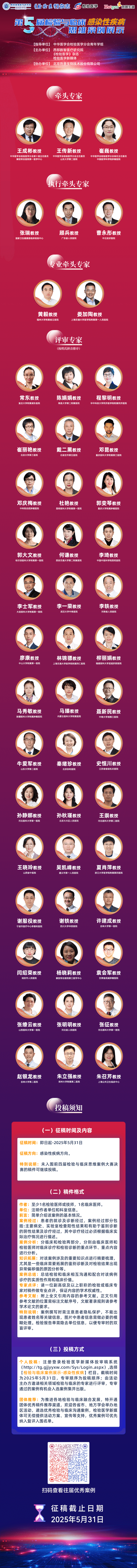 更多活動流程及投稿信息見官方通知:火熱征稿中 | 第5屆檢驗(yàn)與臨床(感染性疾病)思維案例展示專家評審團(tuán)公布