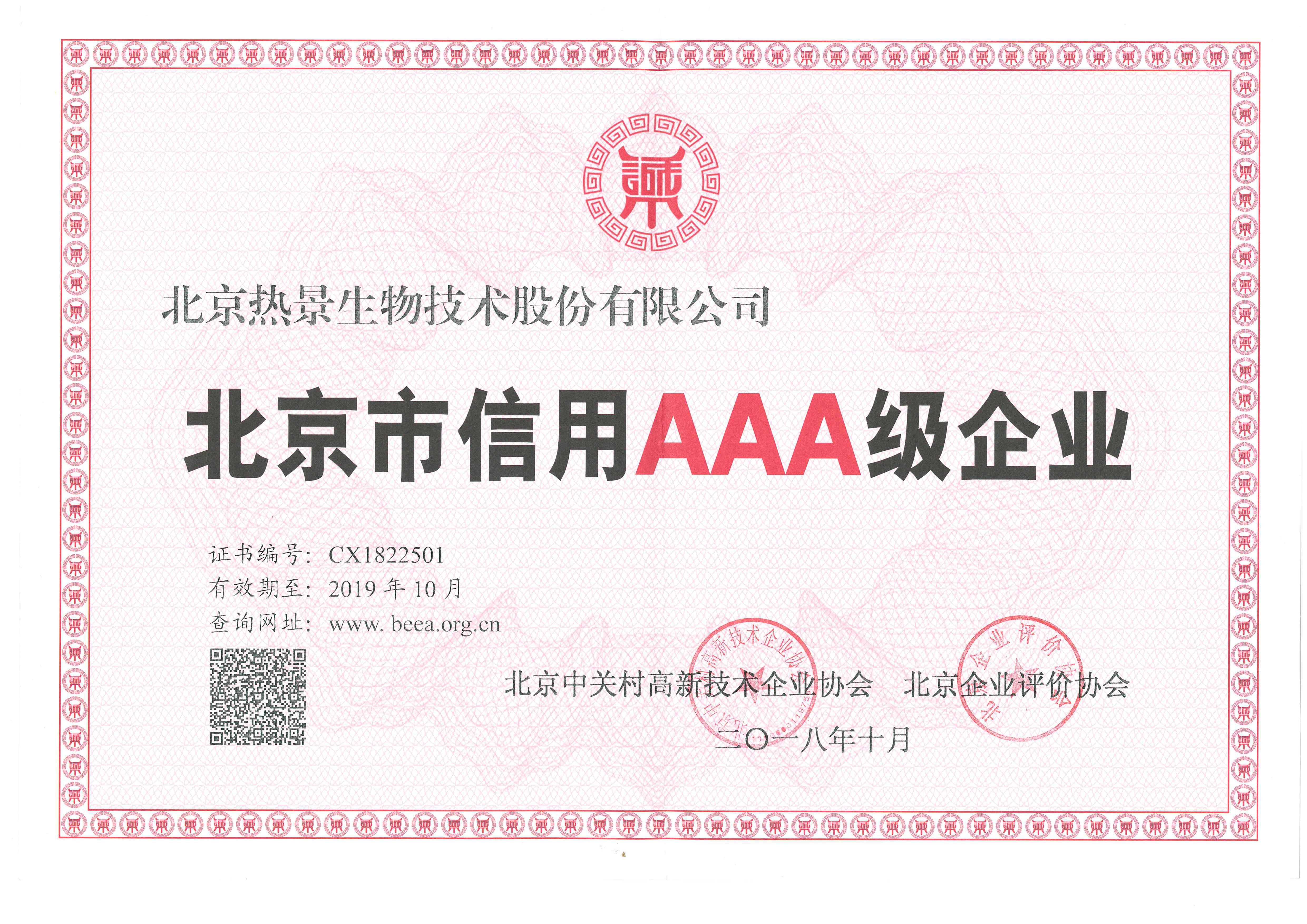 北京市信用AAA級企業