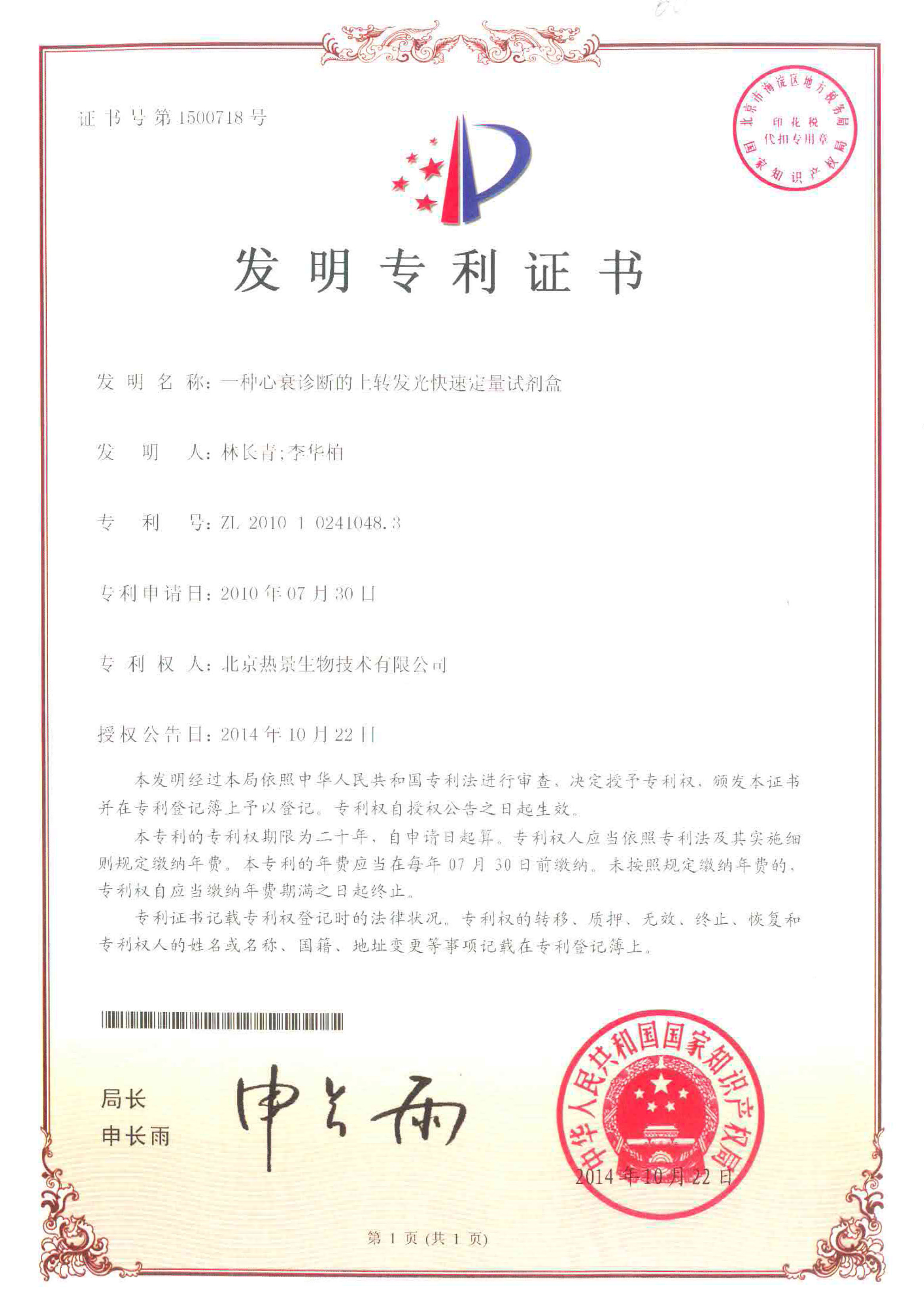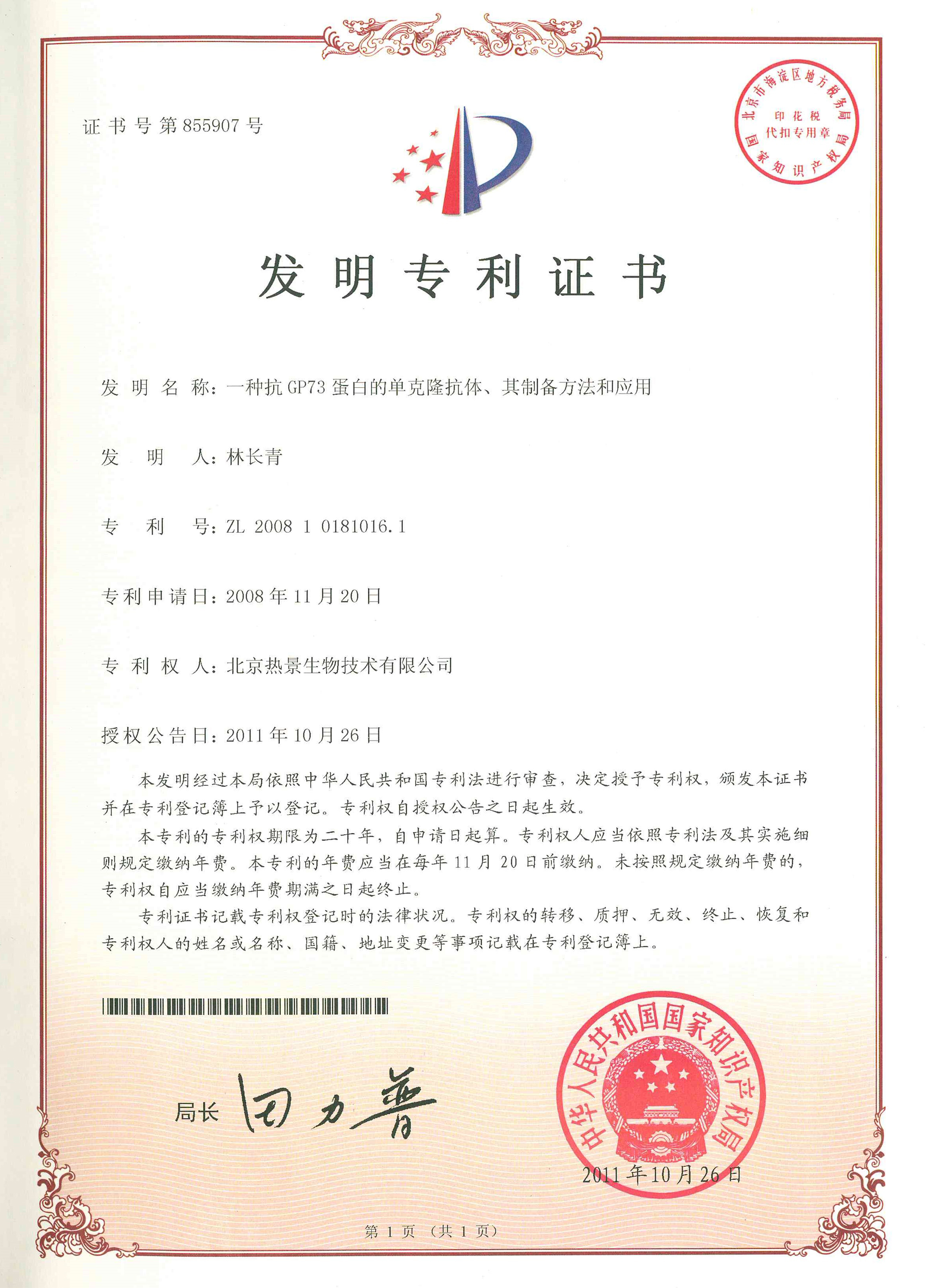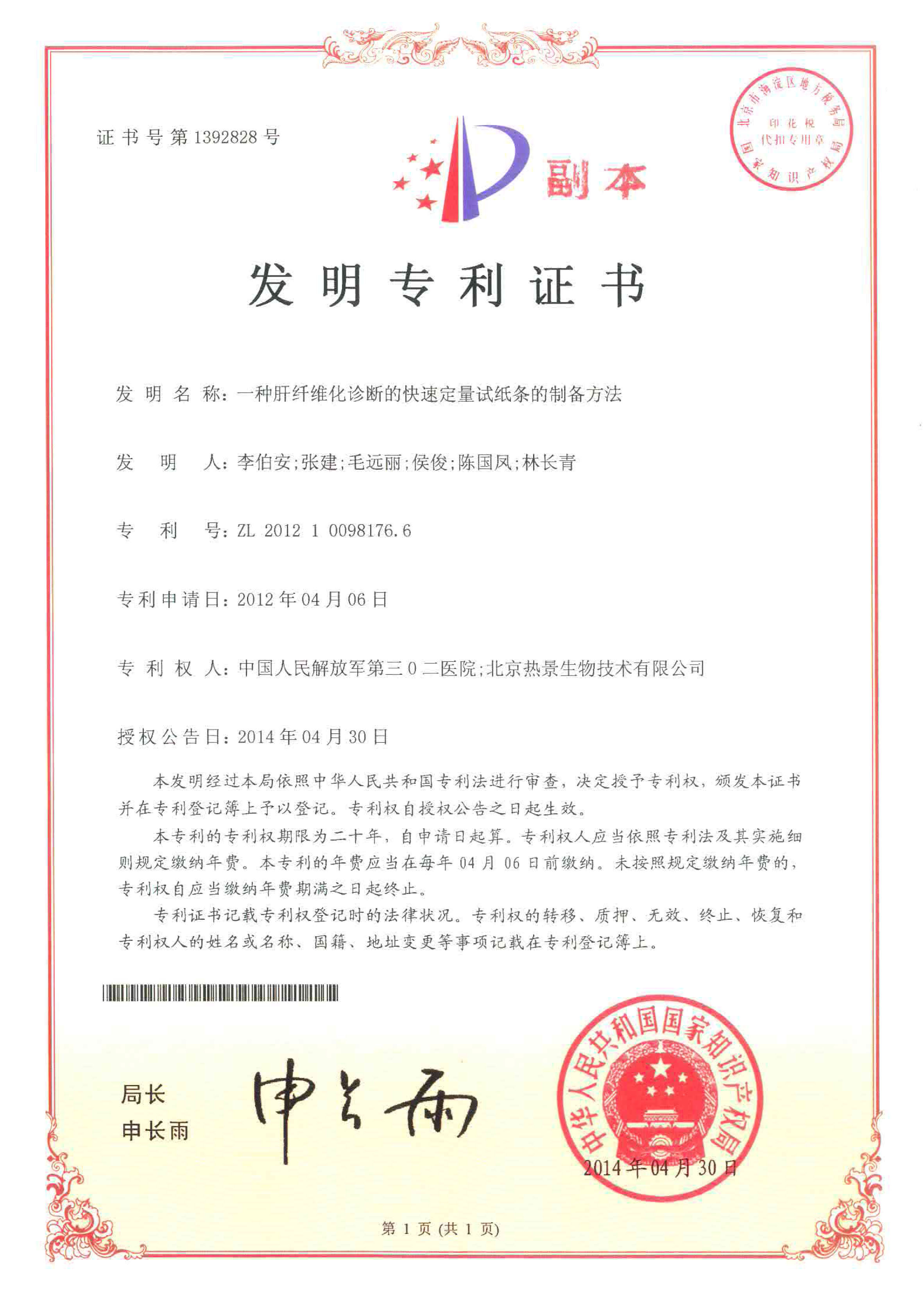 發(fā)明專(zhuān)利證書(shū)