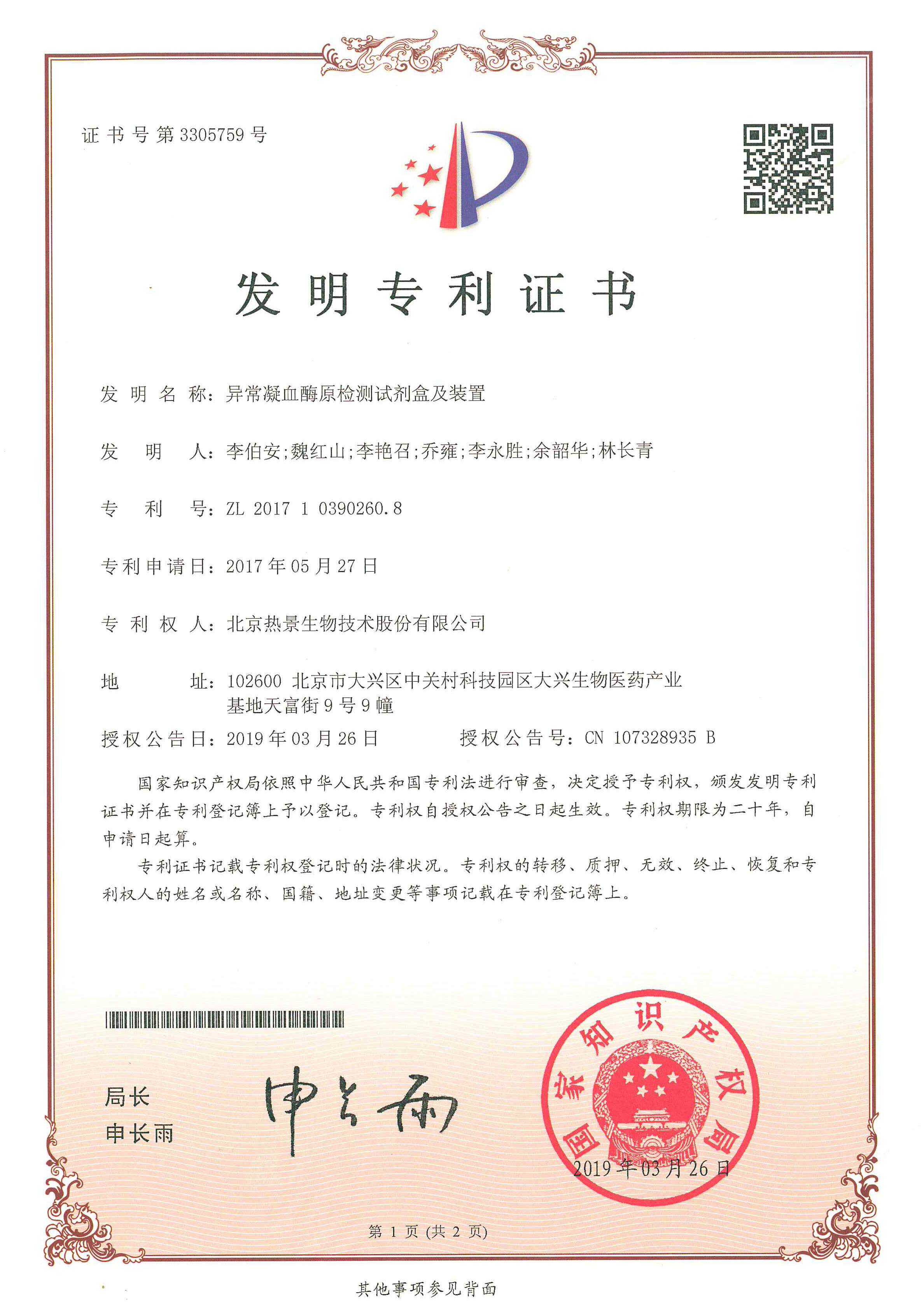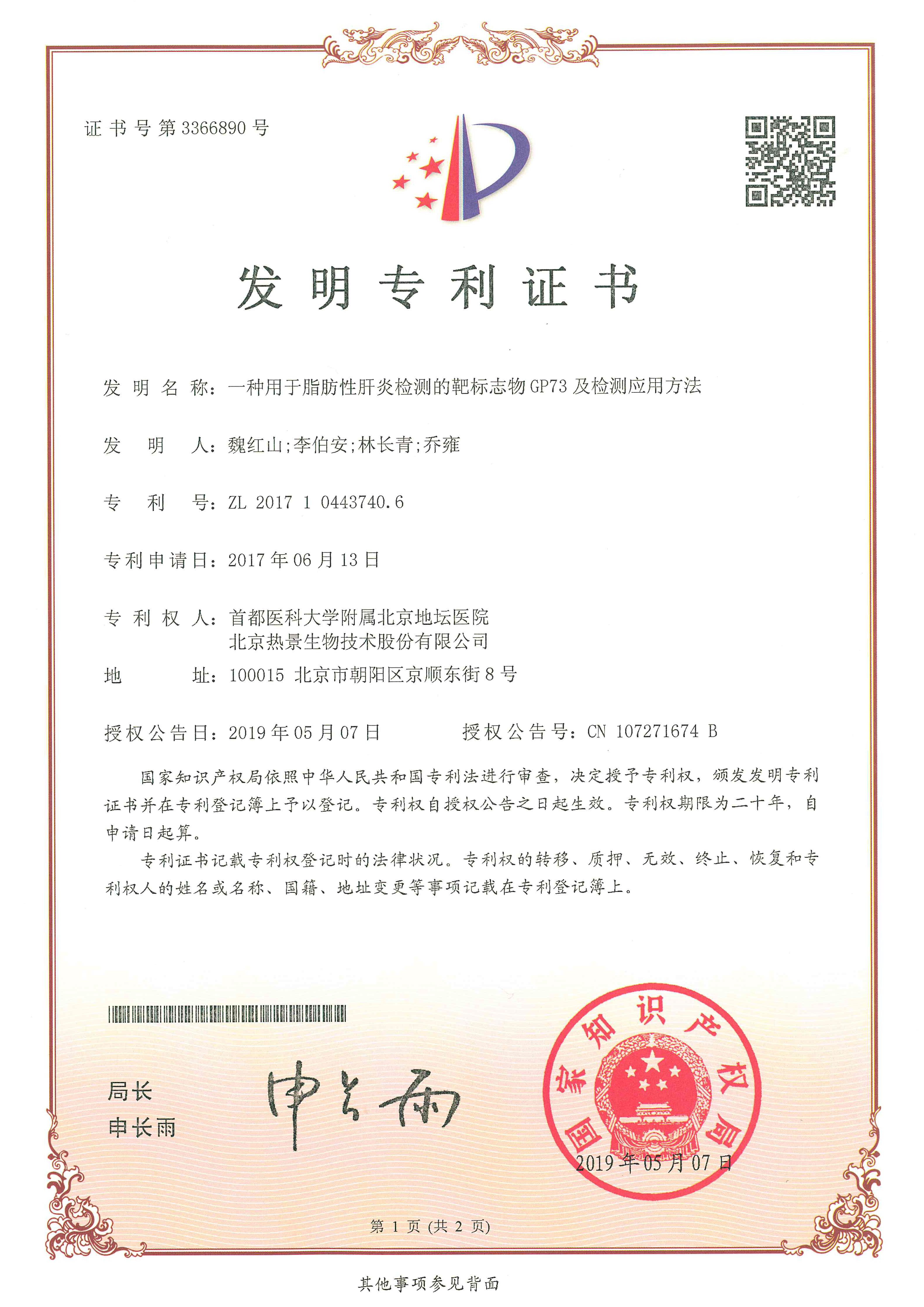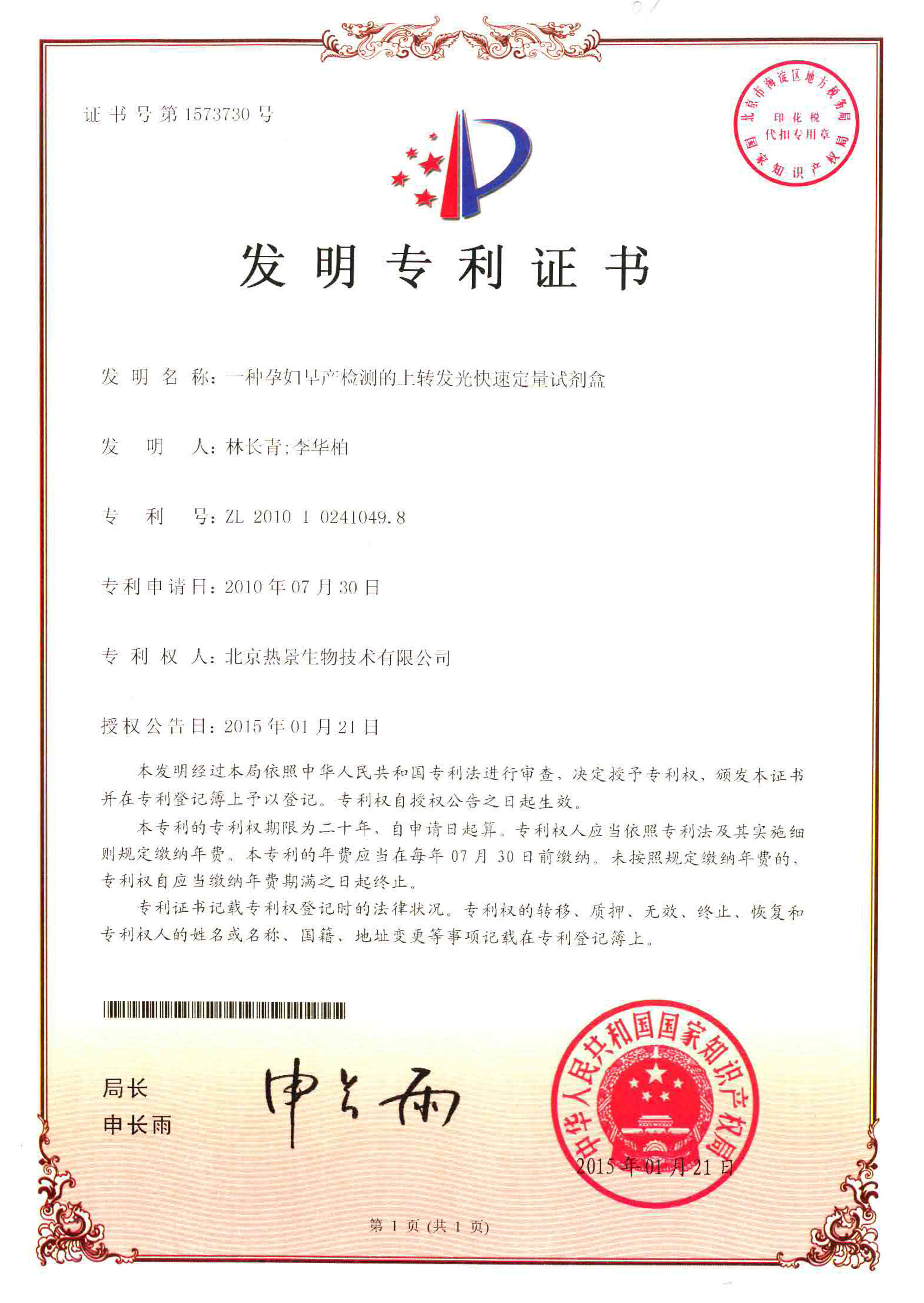 發(fā)明專(zhuān)利證書(shū)